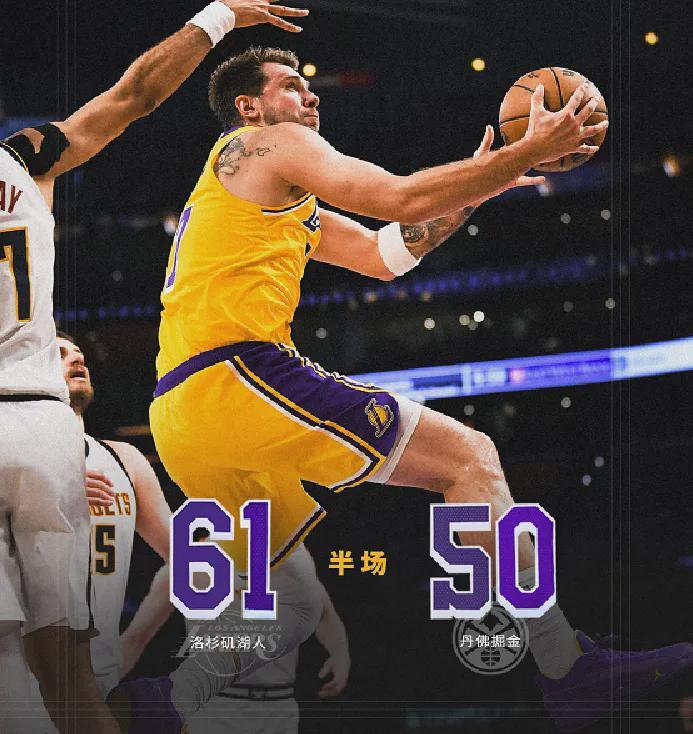 西部强强对话,两队均全主力出战,上半场湖人61-50掘金。