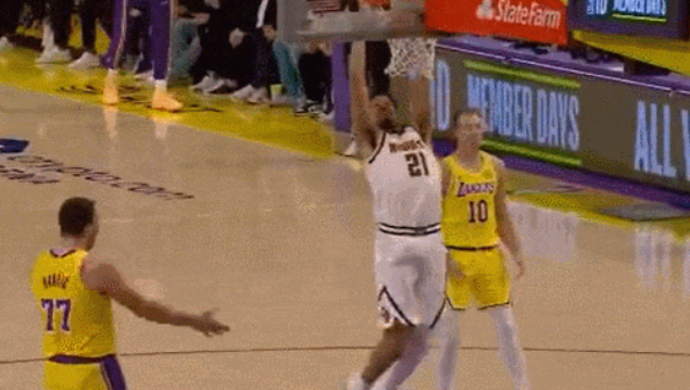 掘金那边“湖人克星”穆雷严重失准投篮14中1只得到5分6板6助,约基奇24分16板14助大号三双外加5断难救主,屡次贡献英雄球的戈登27分5板2助功亏一篑。