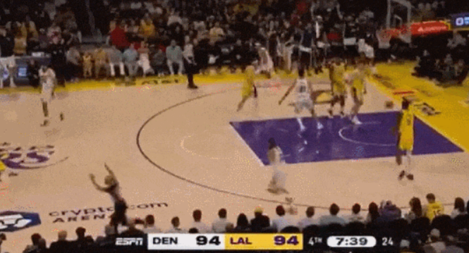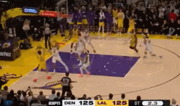 常规阶段收尾,里夫斯故意罚球不中,成功抢到进攻篮板并命中抛投拯救了湖人拖进加时赛。